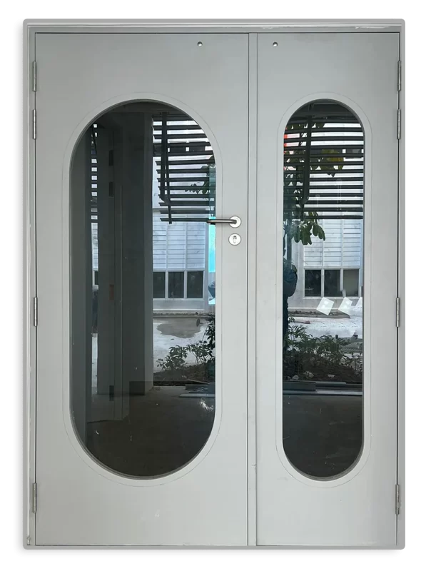 They are typically used in commercial buildings, hotels, and apartments where both design and safety are important considerations. with a glass panel that allows natural light to enter the space.